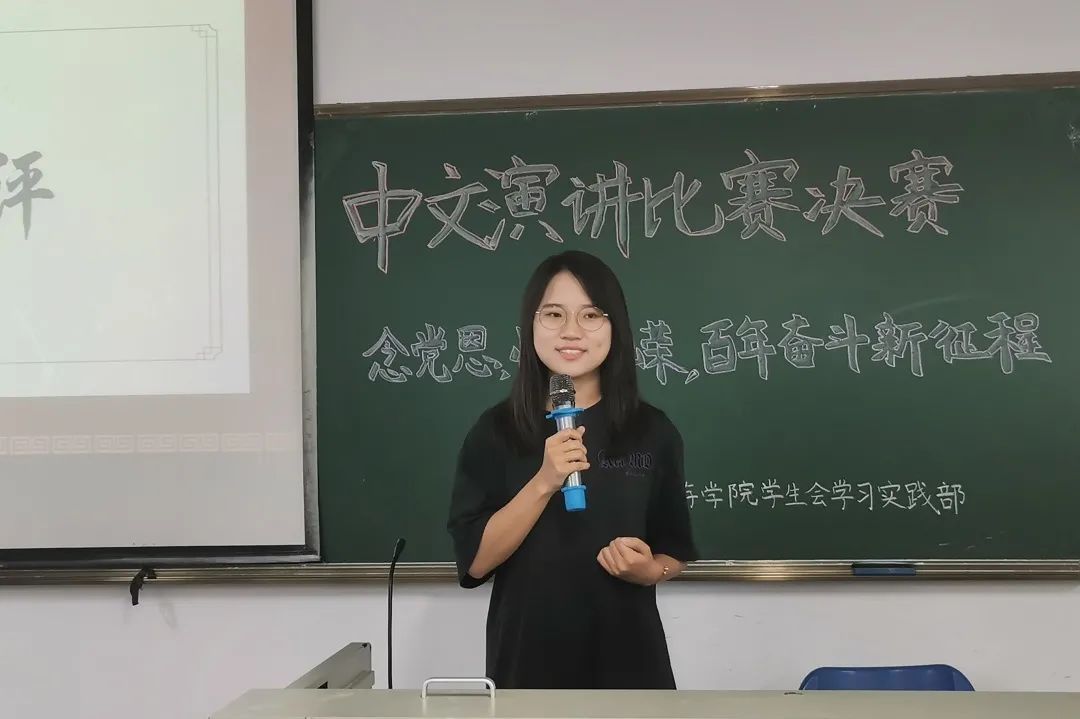 首先由主持人介绍出席本次活动的评委及嘉宾,并且宣读了比赛规则、评分细则以及奖项设置。在第一部分的主题演讲中,十二位选手都文采斐然,各有各的思想,各有各的特色,通过自己的理解对“念党恩,忆峥嵘,百年奋斗新征程”这一主题进行了很好的诠释。其中,毛洁然同学以建党百年的视频为背景,为我们带来了一场新颖独特的演讲,较强的感染力也使评委们为之动容。在观看了一段关于党的诞生背景的视频之后,现场的氛围更加活跃了。